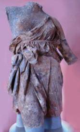 – Две мраморные женские статуи, от которых сохранились только тела (практически идентичные), запечатленные в движении. Это, вероятно, были элементы акротерия (высшей точки) храма.