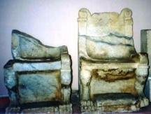 – Два мраморных трона конца классического театра из Эпископи – места первого ряда для официальных лиц и наиболее уважаемых граждан.