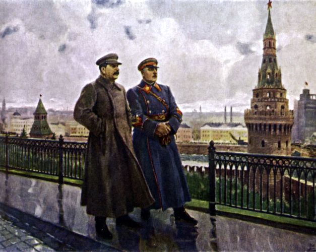 Картина, получившая в народе название «Два вождя после дождя». И. В. Сталин и К. Е. Ворошилов в Кремле. Художник А. Герасимов