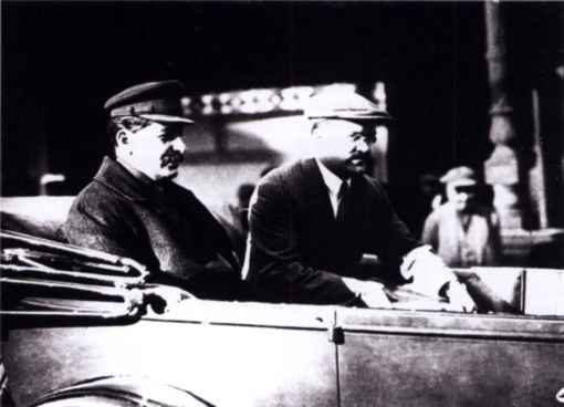 В. М. Молотов и И. В. Сталин едут на V съезд Советов СССР 1929 г.