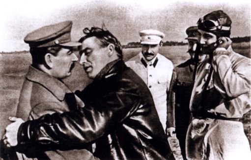 И. В. Сталин встречает экипаж В. П. Чкалова на Щелковском аэродроме